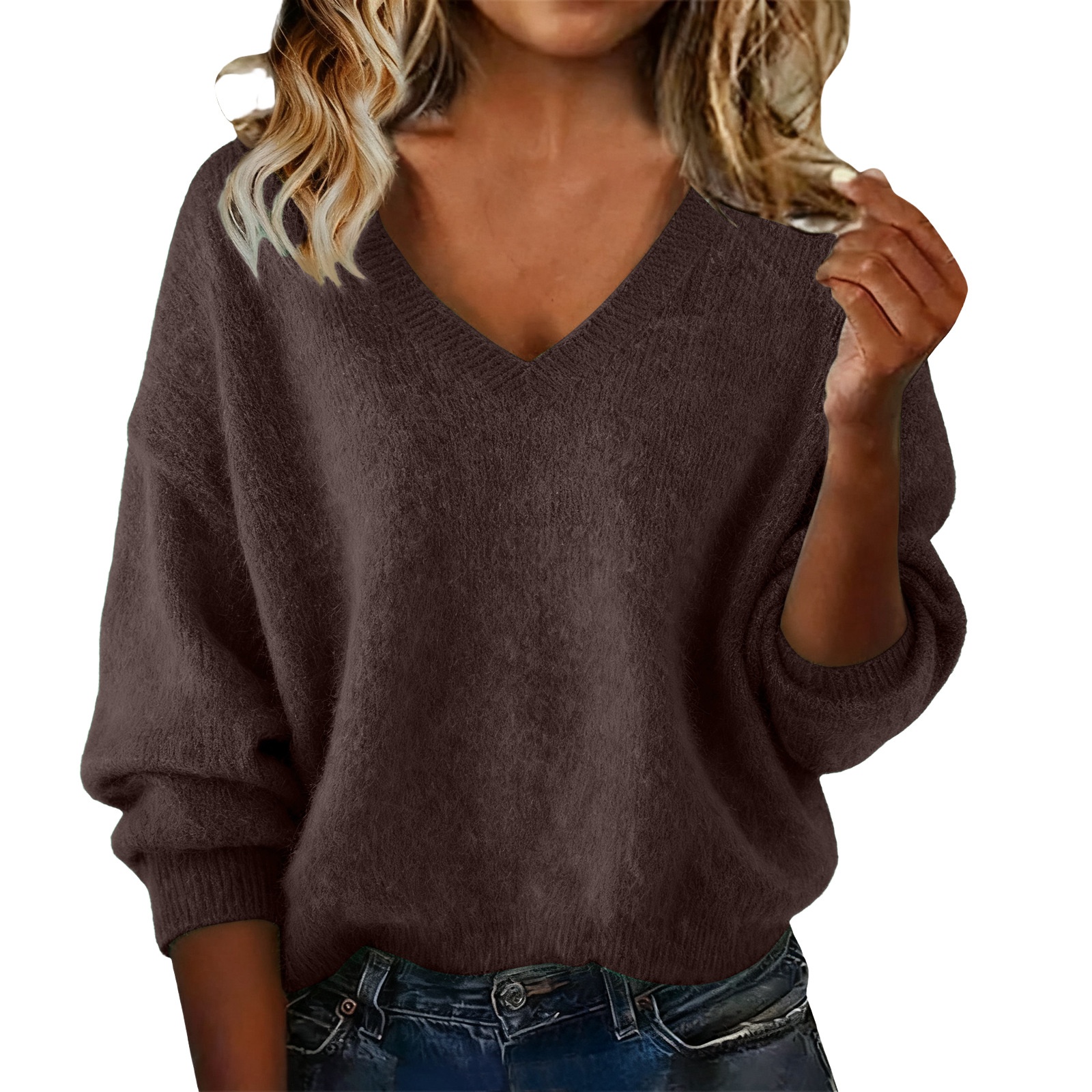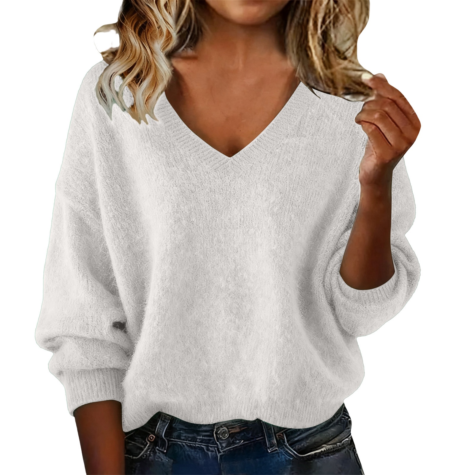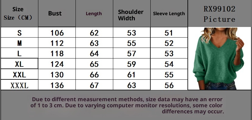 New Fashion Loose Solid Color V-neck Sweater Women