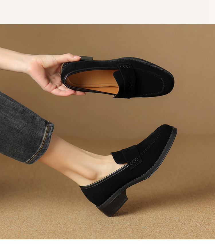 Sheepskin Chunky Heel Pumps Women Spring Concise